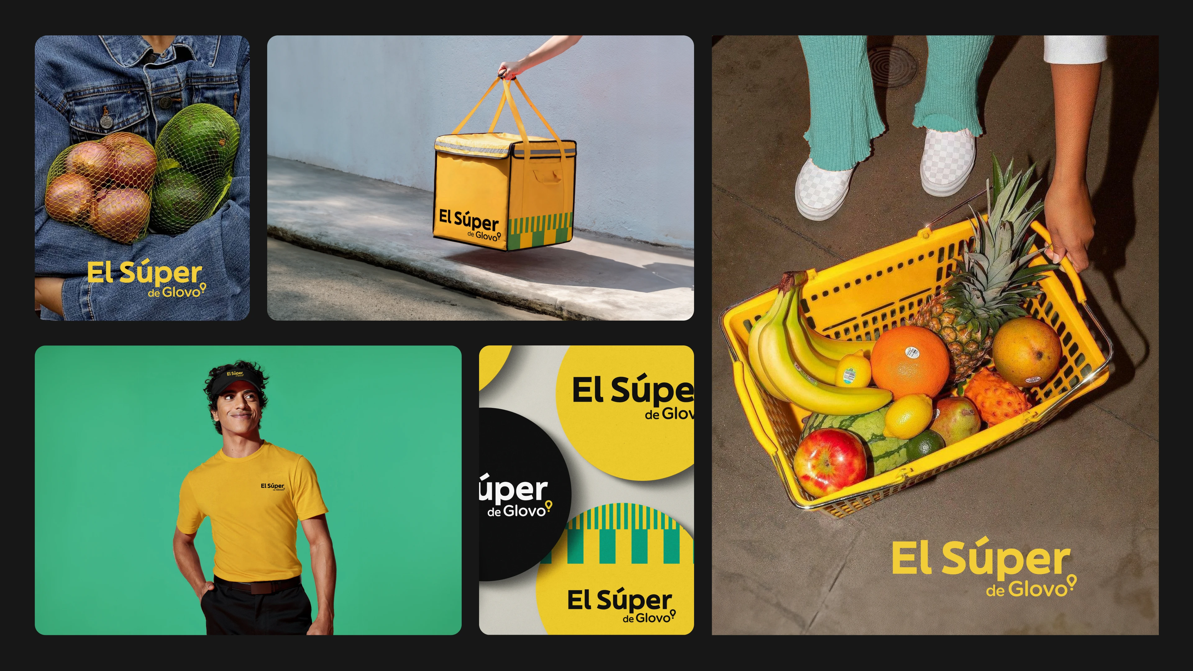 Para el logotipo optamos por una aplicación sencilla del estilo de marca de Glovo, manteniendo la coherencia de la compañía en todos los canales. Pero para el resto de assets de marca diseñamos un sistema de patrones versátil, diferentes estilos fotográficos para productos, personas y detalles, así como aplicaciones de la nueva marca a sus principales canales de comunicación, como la app, redes sociales, packaging o, incluso, uniformes.