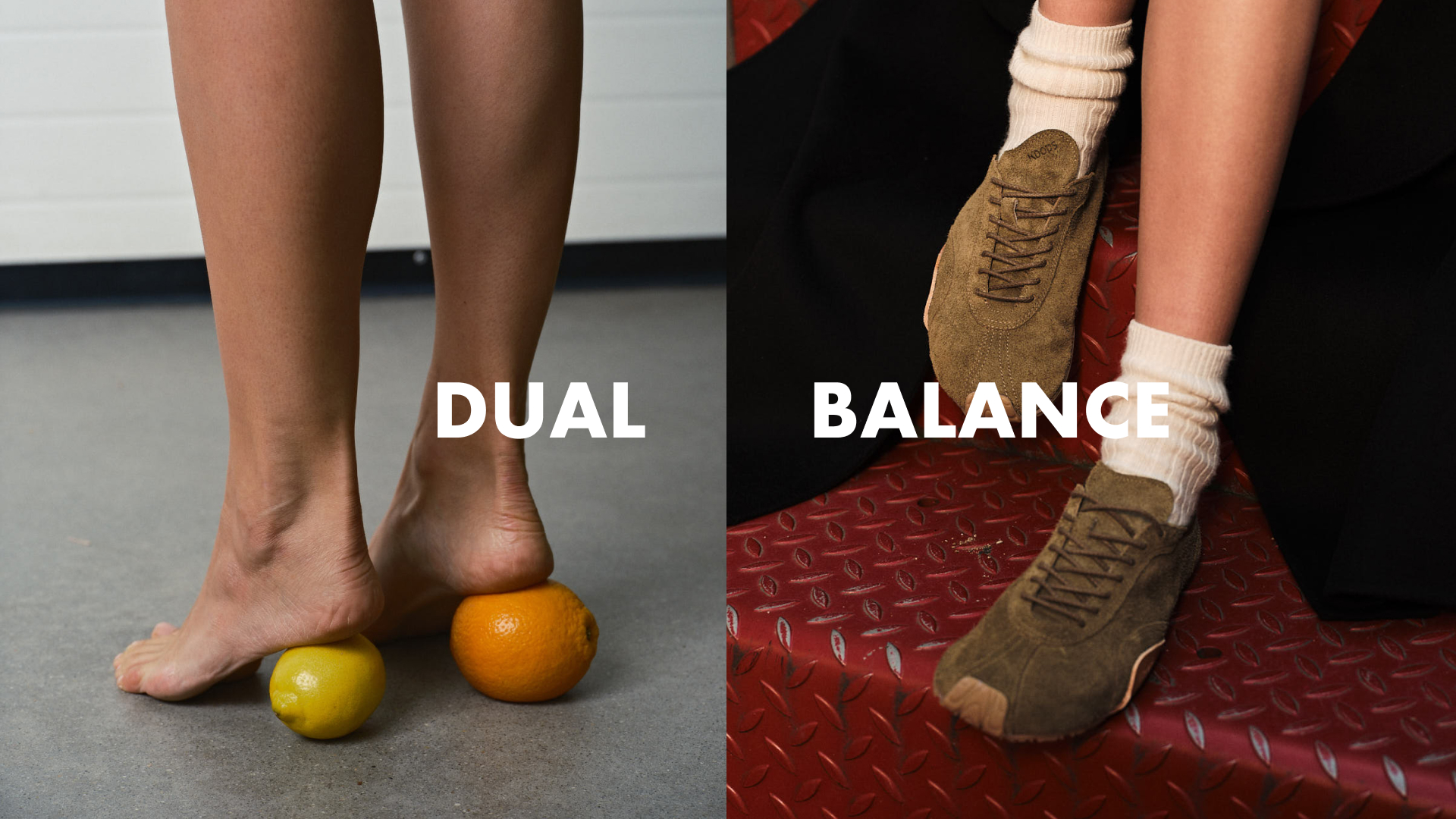 Para la imagen de marca partimos del principio de la dualidad, pues en el caso de Koops los pies viven en una dualidad constante entre la conexión con la tierra y el desenfreno de la ciudad; entre lo aparente de la moda y lo empírico de la funcionalidad. Innovación y emoción. Instinto y pensamiento.