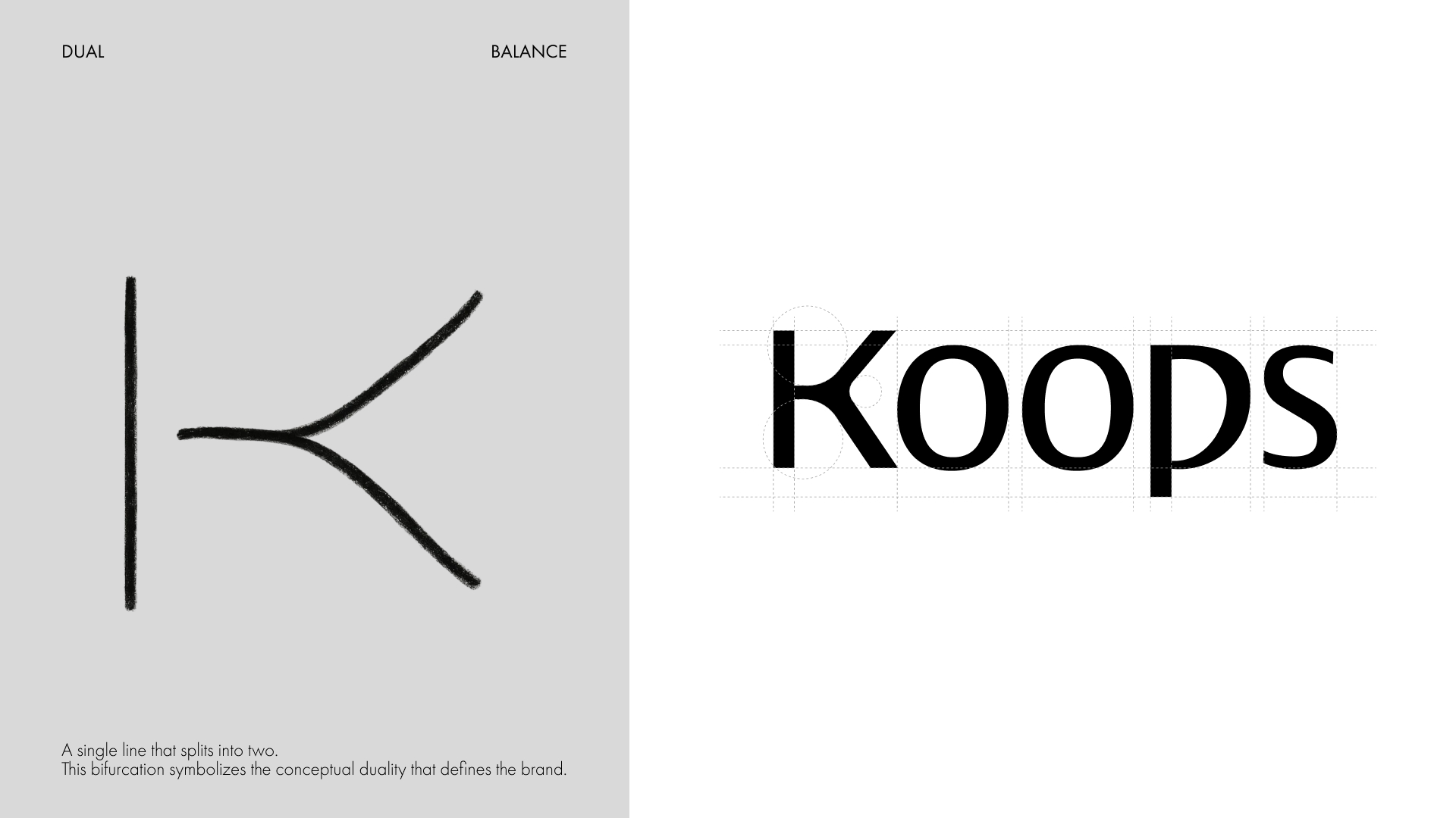 La propuesta gráfica se construye a partir de un gesto visual simple pero poderoso: un trazo único que se divide en dos. Un trazo que nos permite construir con elegancia la inicial "K", en una versión abstracta y sintética que puede evolucionar en un símbolo icónico de la marca.