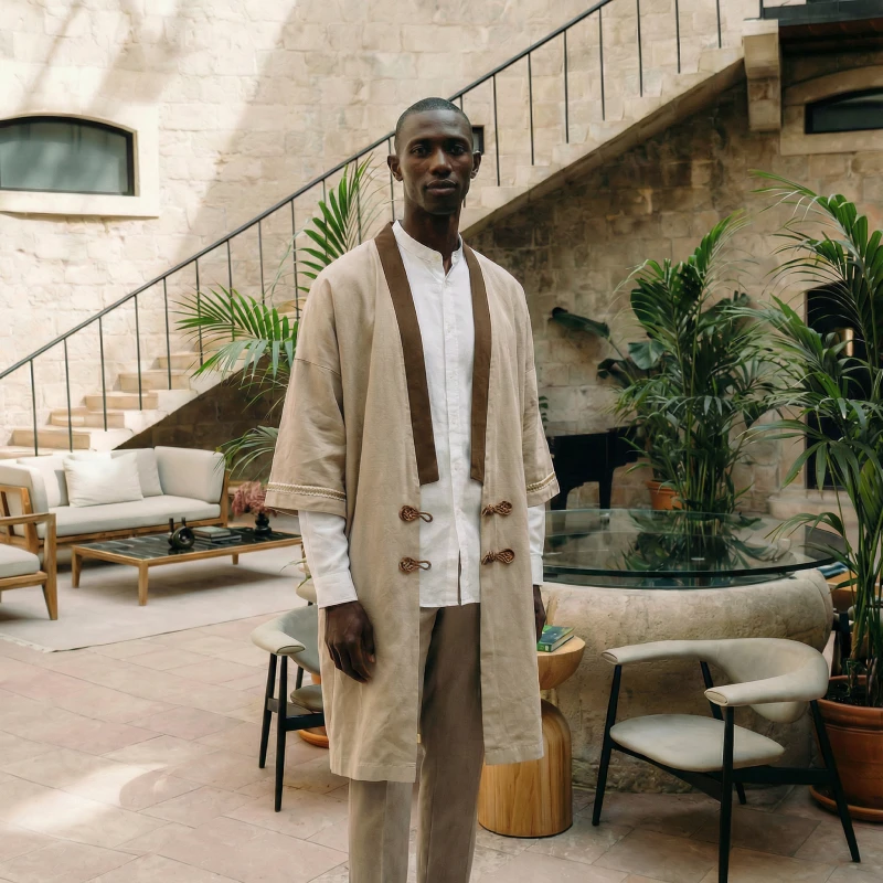 La colección abarca desde el front office hasta los equipos operativos y de servicios, adaptándose a cada función sin perder coherencia visual. Camisas de cuello mao, polos y pantalones de inspiración natural conviven con piezas icónicas como el kimono y el chaleco, que se convierten en elementos distintivos del proyecto.